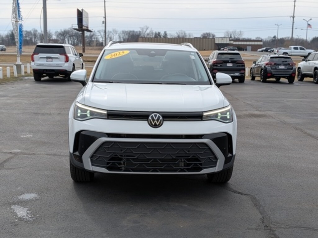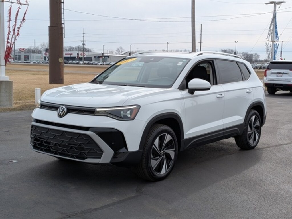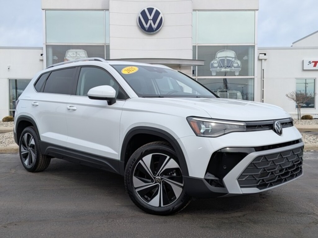 Certified. 2025 Volkswagen Taos 1.5T SE Pure White 1.5L I4 Turbocharged DOHC 16V LEV3-SULEV30 174hp
